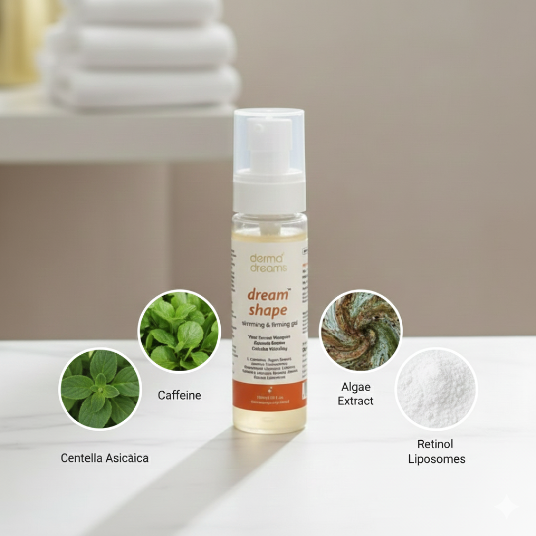 Dream™ Shape Slimming & Firming Gel is a powerful targeted formula designed to visibly reduce the appearance of cellulite, improve skin elasticity, and sculpt a smoother, firmer, more contoured body. Enriched with L-Carnitine, Caffeine, Retinol Liposomes, Vitamin E, and Centella Asiatica Extract, this gel supports fat-burning activity, boosts microcirculation, and hydrates deeply for soft, toned, silky-smooth skin.