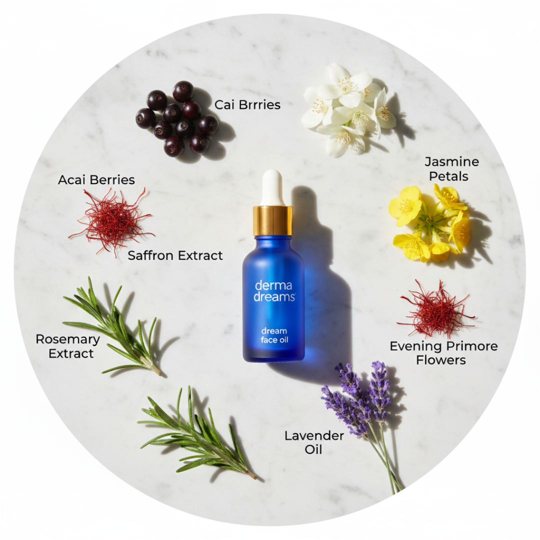 Acai Berry Oil: Packed with antioxidants to fight free radicals and dullness.
