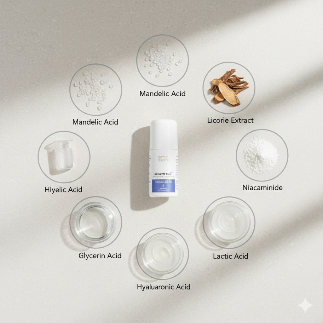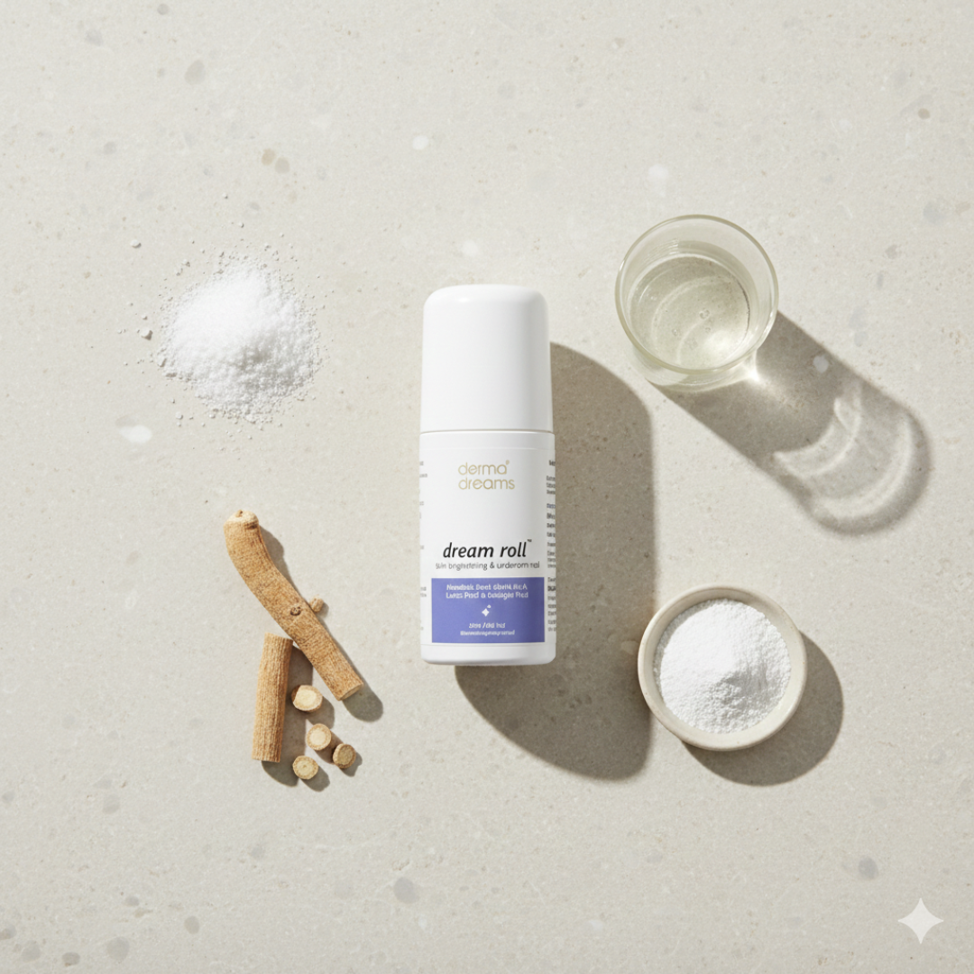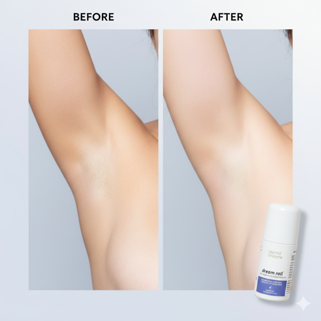 Transform your underarm care routine with Dream Roll™, a potent skin brightening and odor-controlling roll-on designed for smooth, fresh, and radiant underarms. Formulated with a powerful blend of Mandelic Acid, AHA-BHA, Lactic Acid, and Salicylic Acid, this dermatologically tested roll-on targets pigmentation, reduces bacterial growth, and keeps odor under control, giving you confidence all day long.